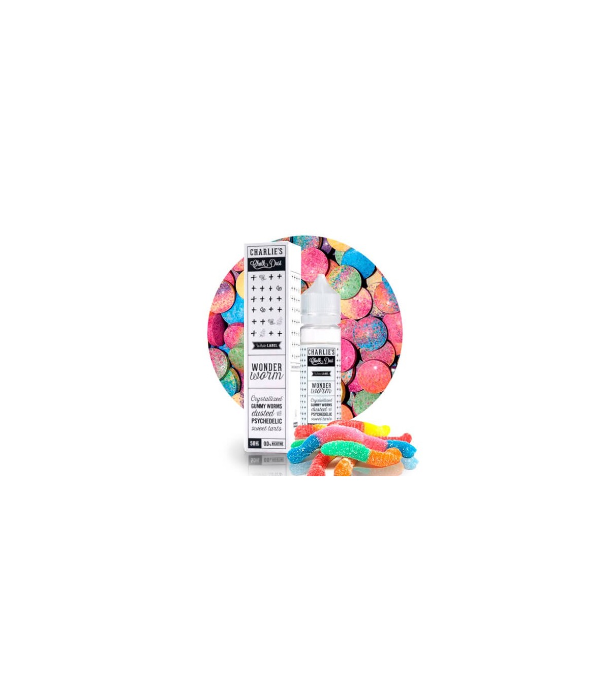 Charlies Chalk Dust Wonder Worm 50ML (BOOSTER) es un e-liquids se caracteriza por su mezcla de Sweet Tarts (Love Hearts) y Gummy Worms, disponible ahora en botella de 50ml.