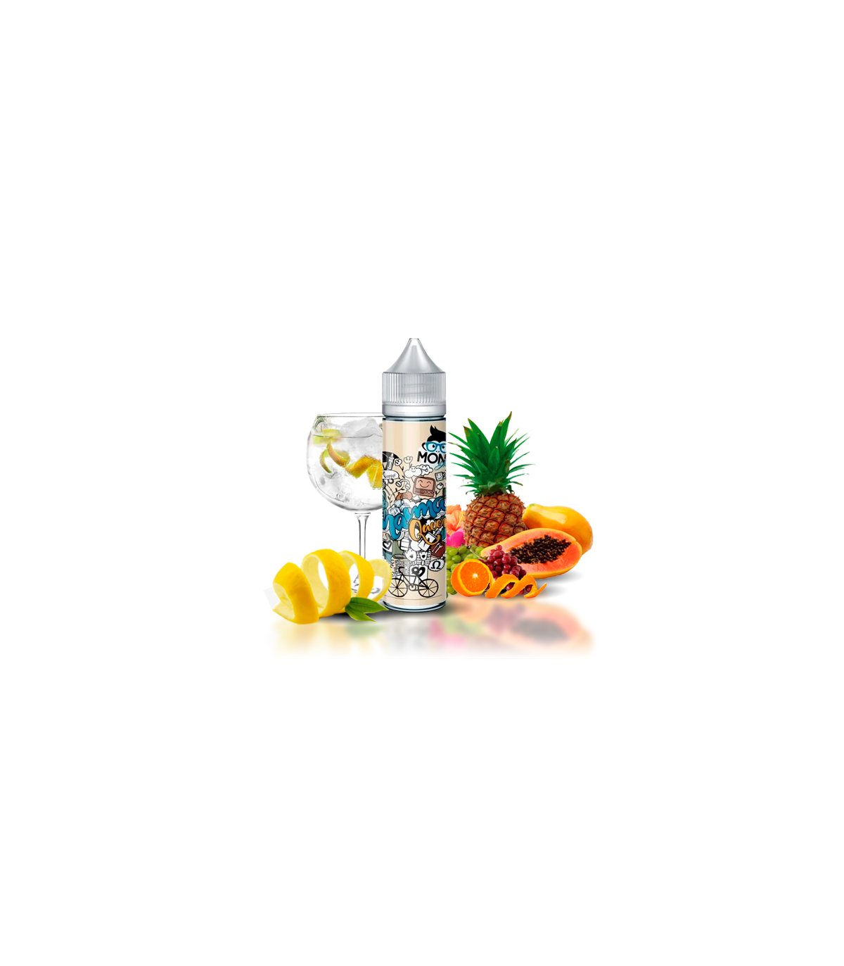 Mamma Queen tiene el honor de ser la primera creación de Mono eJuice. Traslada el espíritu de los elíquidos tipo gin tonic a un mundo tropical; con toques afrutados y diferentes especias que forman una combinación única.